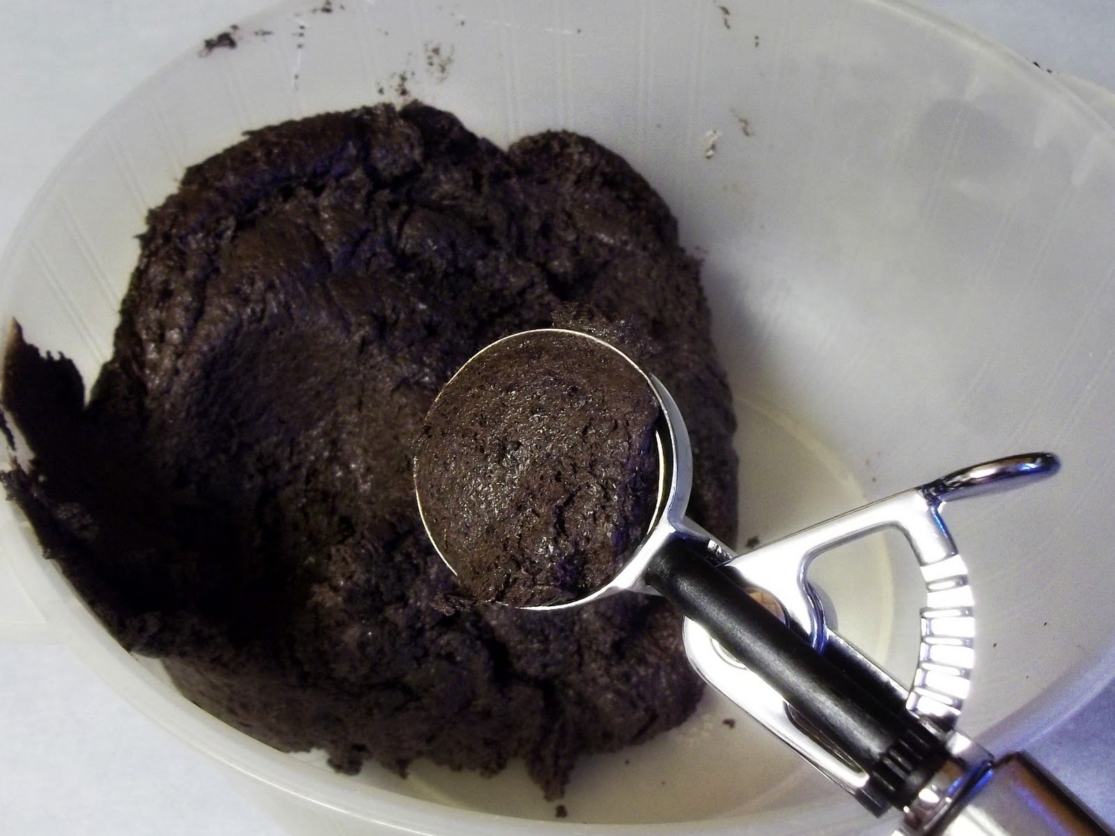 Use a small cookie/ice cream scoop or a small spoon and dish out small balls of the oreo mixture.